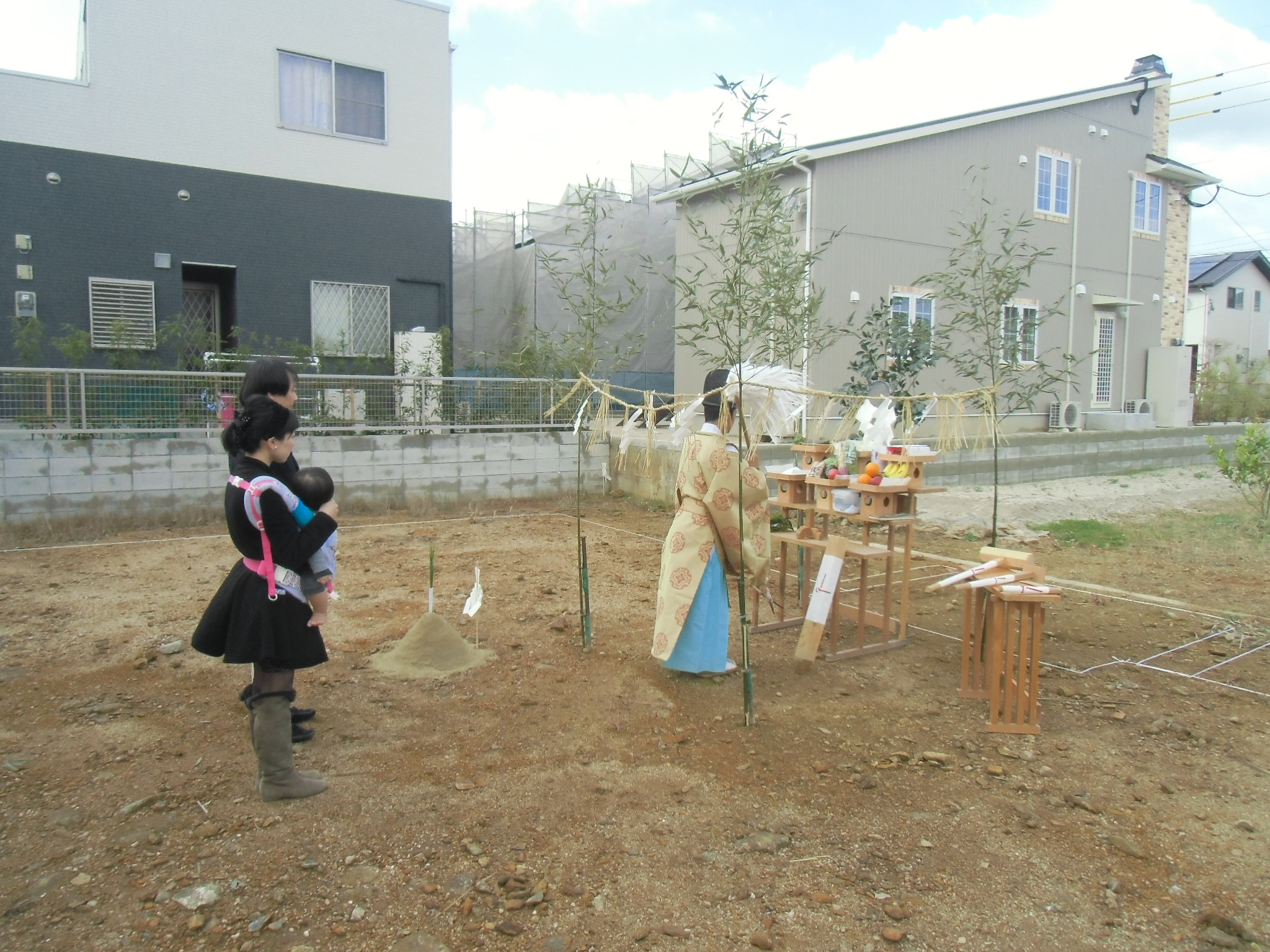 地鎮祭(西区金武) sai_kenchiku 2014/11/29 総合 本日西区金武にて地鎮祭が行われました! 最近の雨で天気が心配されていましたが無事太陽を拝むことが出来ました! 水はけも良く、地盤も固いのがわかりましたね! トントン拍子でここまできました。もう着工ですね! 可愛らしい紅白饅頭をありがとうございました! 引続き宜しくお願い致します! 坂口